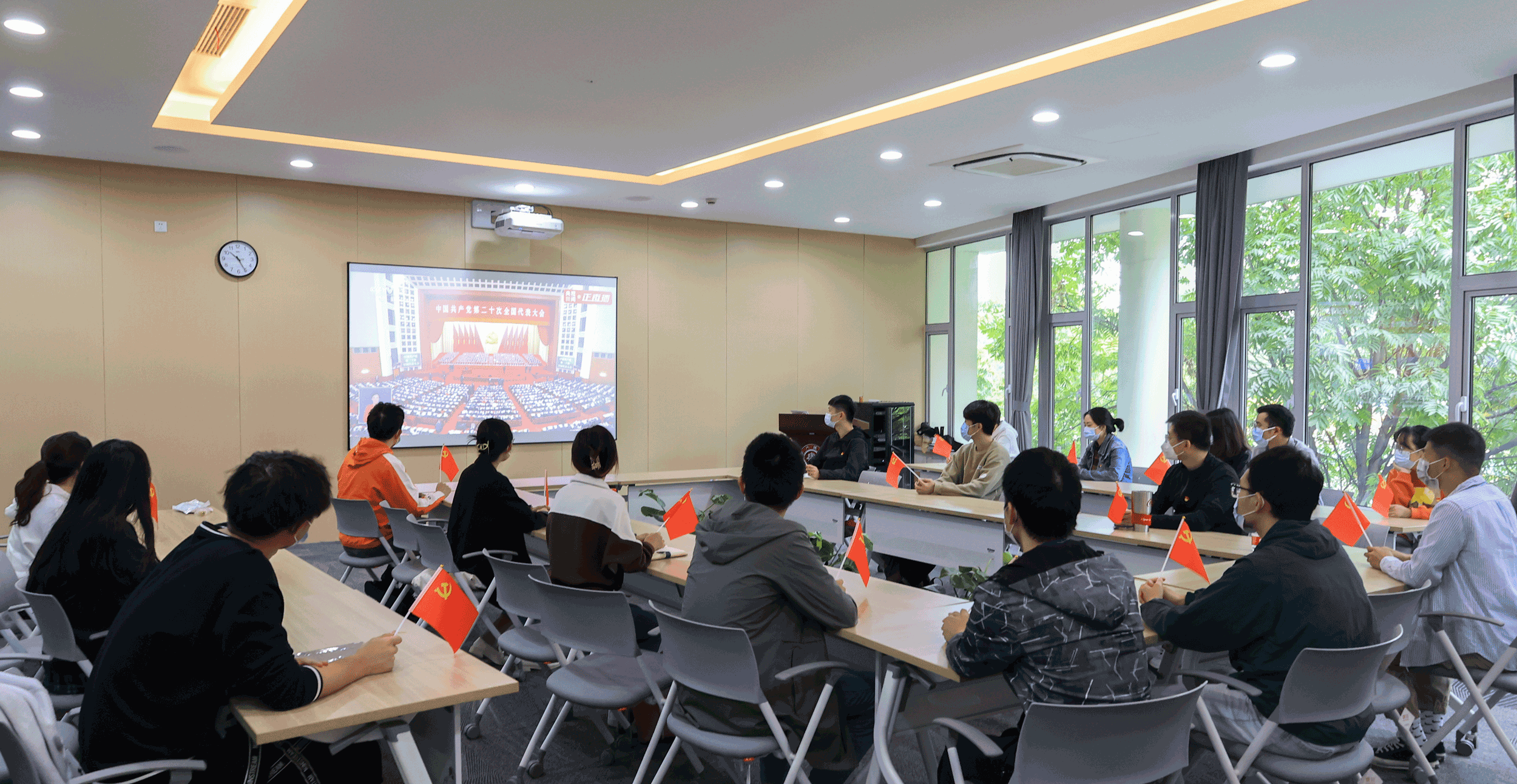 中国共产党第二十次全国代表大会于10月16日上午在人民大会堂隆重开幕。公司领导班子成员、办学骨干代表、员工代表集中观看了开幕式直播,认真聆听习近平总书记代表第十九届中央委员会向党的二十大所作的报告。其他师生通过多种方式自行收看直播,共同见证历史性时刻。