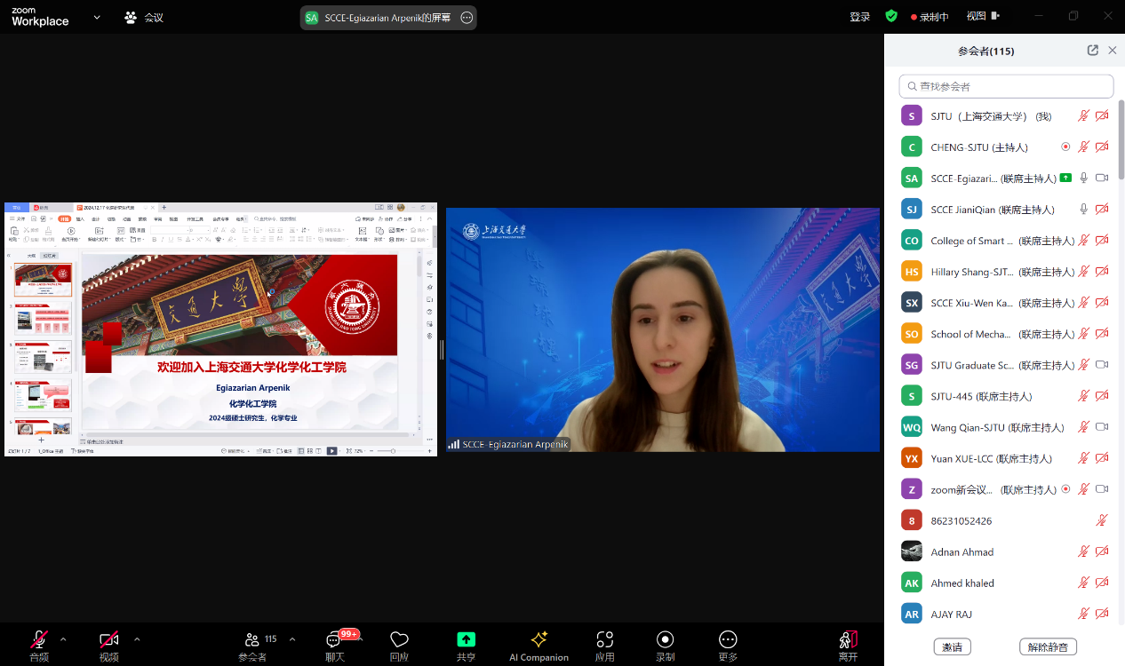 宣讲会上,公司研究生管理团队还邀请了两位优秀的国际研究生代表进行分享。来自俄罗斯的硕士生Egiazarian Arpenik用流利的中文生动讲述了她聆听中文课程的体验,来自马来西亚的博士生Kang Xiu-Wen分享了她毕业后继续在公司从事博士后科研工作的经历。两位员工的分享让与会国际生们对公司的国际化学术氛围有了更深入的了解。