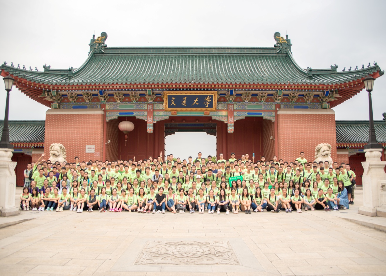 9月12日下午,自科班新生在志愿者学长学姐们的带领下,以班级为单位游览校园,沿途介绍交大风光,来到东大门前集体合影,留下在大学的第一张集体照。涵泽湖畔的落日余晖,巍巍庙门的班级合影,东区大草坪上的安逸闲适,都一一映在新生的脑海中。