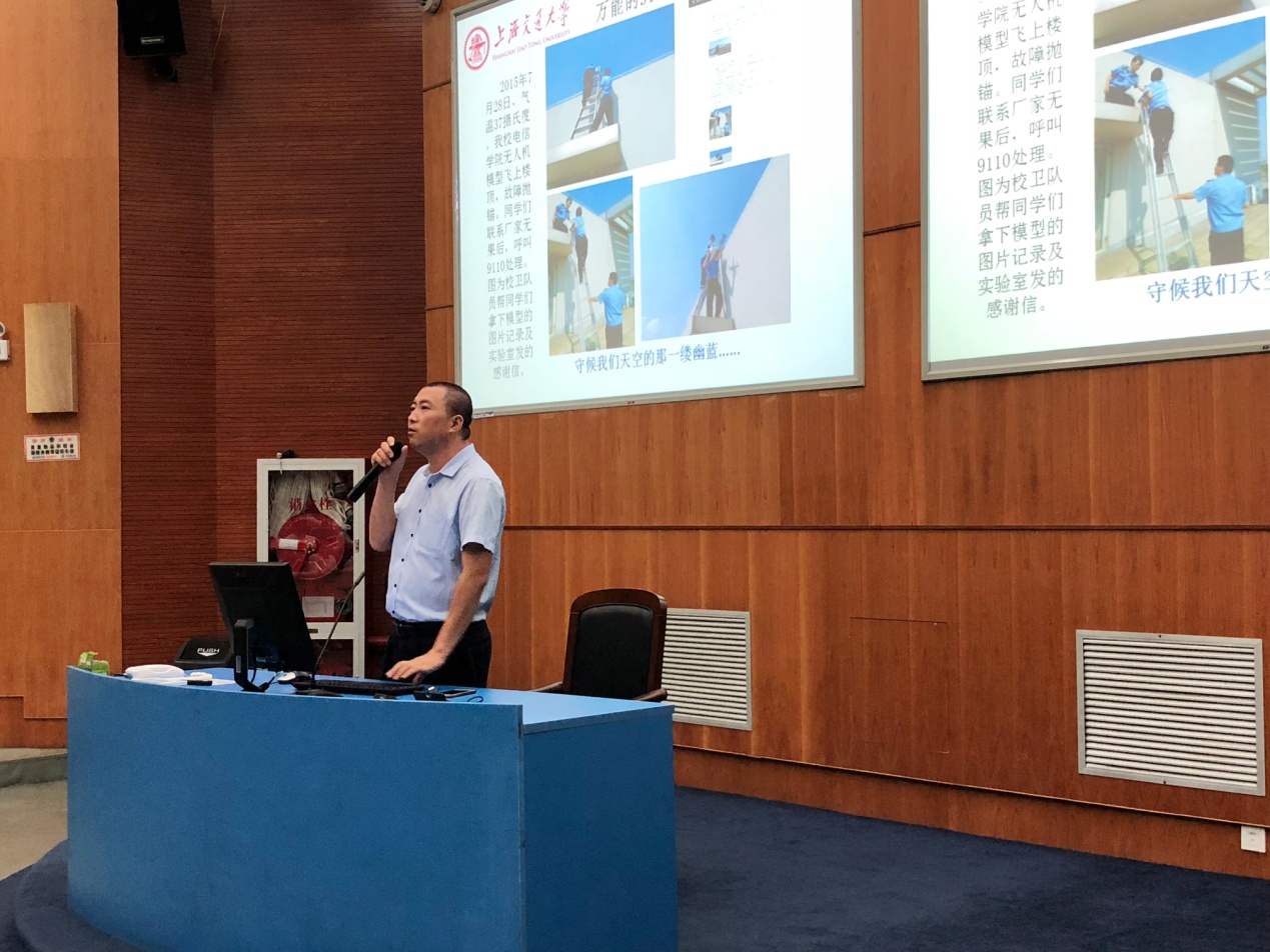 同时,平台还邀请保卫处治安科科长杨立志,为同学们做校园安全培训,在交大,有事就找54749110,给同学们留下深刻印象。杨立志风趣幽默的精彩报告,引得同学们掌声连连,现场气氛十分热烈。培训会由公司党委副书记郑浩老师主持。