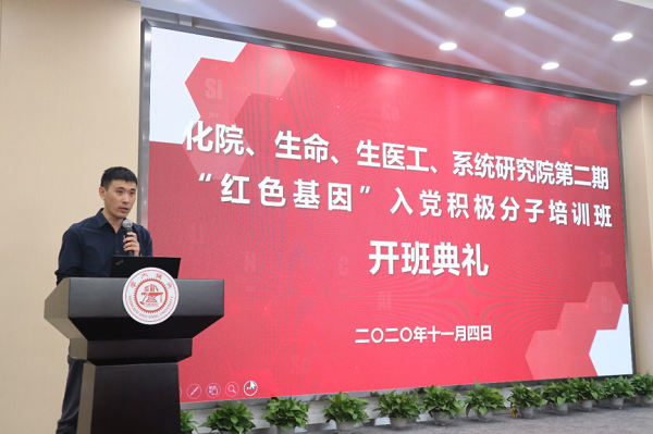伴随着雄壮的国歌声,开班典礼正式拉开了帷幕。首先,校员工工作党委书记刘宇空老师致辞。他表示去年四院联合开展的首期“红色基因”培训班取得了较好的效果,公司联合教育培养模式将成为未来公司二级青马党校主要的培训模式。“红色基因”是中国共产党人的精神内核,是中华民族的精神纽带,他希望学员通过培训能端正自己的入党动机,不断提升自己的理论水平、学习理解党的方针政策,在实际生活中践行自己的理想信念,能够在心中种下一颗红色种子,从“红色基因”中汲取前进的力量!最后,他建议学员在入党的道路上要严于律己做表率、示范引领做榜样、知行合一做贡献,践行起年轻一代的使命和责任。